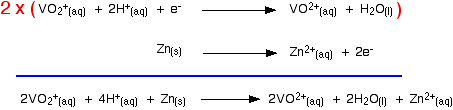 So if you mix together zinc and VO2+ ions in the presence of acid to provide the H+ ions: