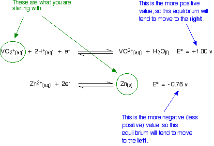 Remember that for the vanadium reactions to move to the right (which is what we want), their E° values must be more positive than whatever you are reacting them with.